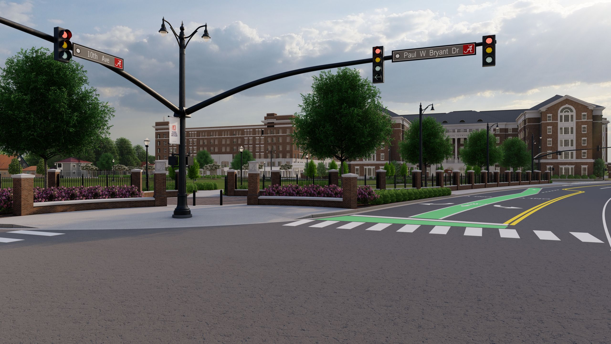 This project will be comprised of 2 packages: Package A – Existing Tutwiler Demolition, and Package B – Site Redevelopment Phase I. Package A – Existing Tutwiler Demolition will include abatement and demolition of the existing residence hall, disconnection of utilities, and rough grading of the site for transition to Package B – Site Redevelopment. Package B – Site Redevelopment Phase I will include pedestrian pathways to service the area from Bryant Drive only, utility improvements, road and infrastructure improvements, site lighting, and a traffic signal along 10th Avenue. Phase I will only stabilize the area of the existing residence hall and provide temporary drainage.