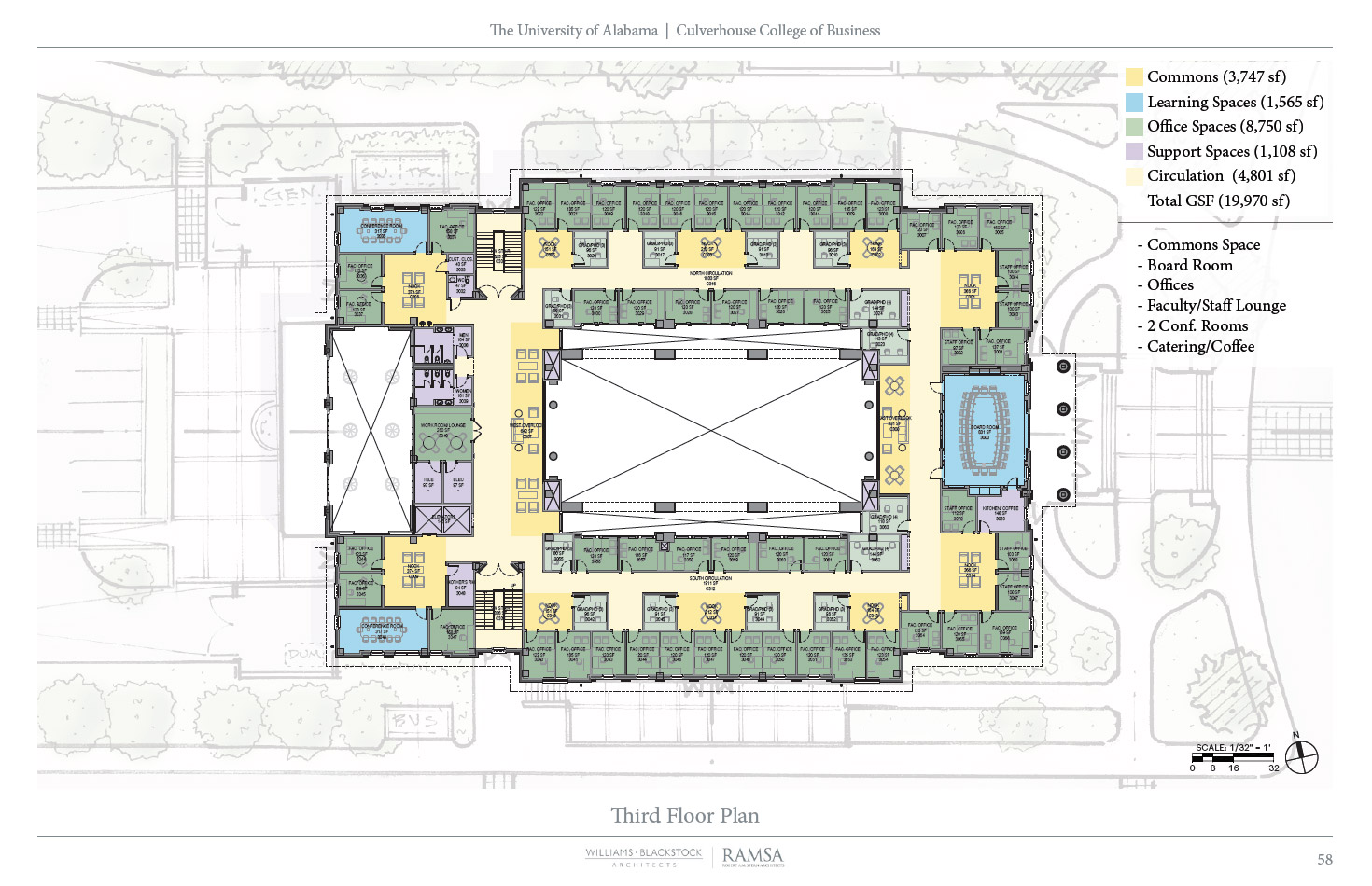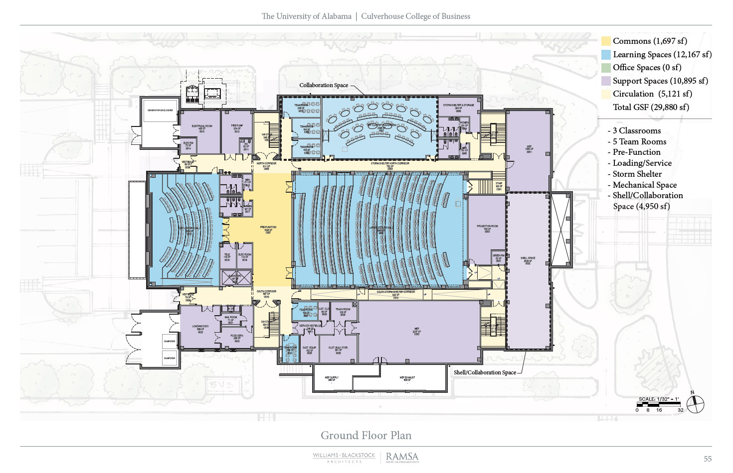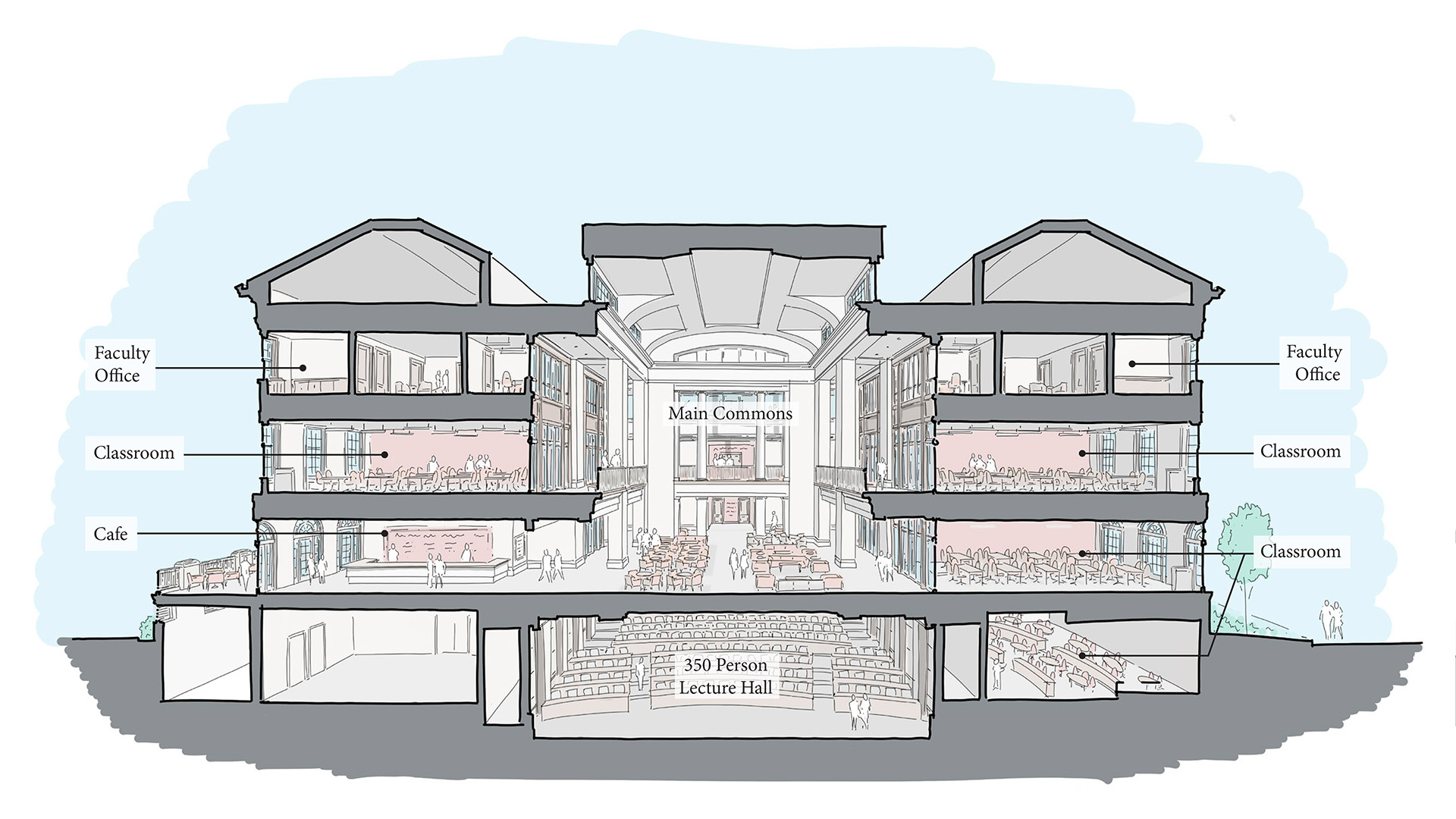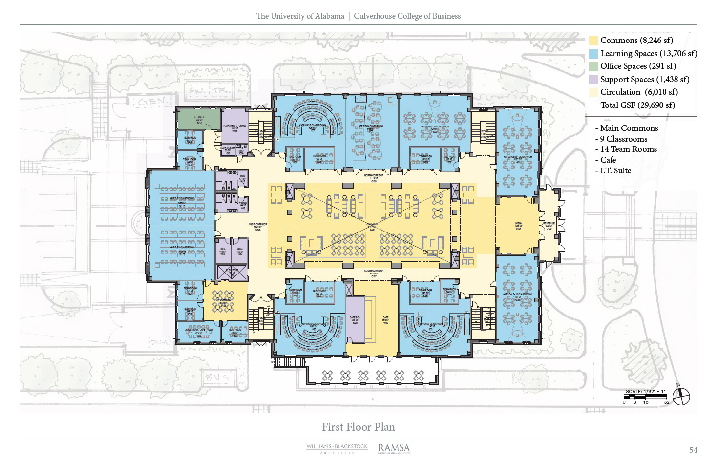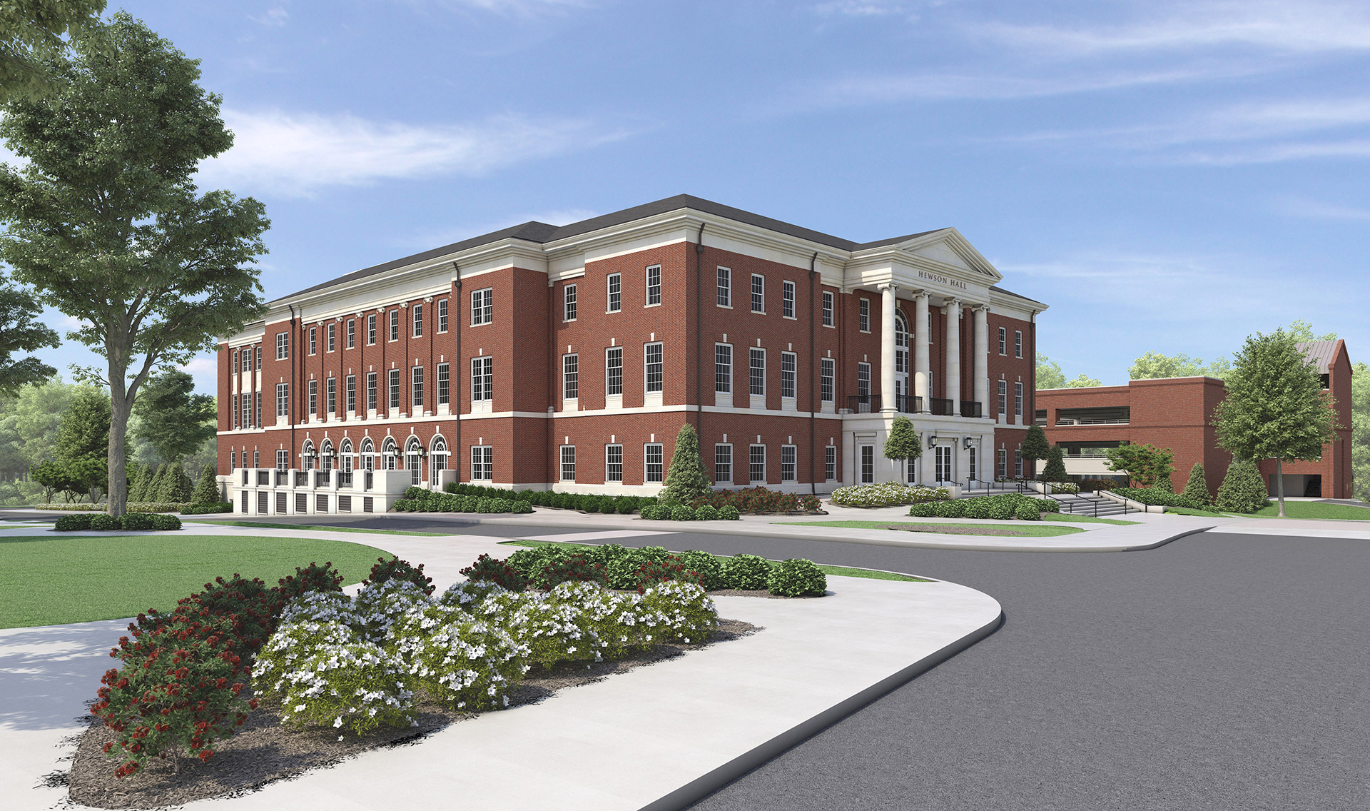 Hewson Hall will provide classroom and office space to accommodate growth in both students and faculty. About 2/3 of the new building will be dedicated to education and training activities, and about 1/3 will be programmed for office and support space. This new facility will allow for areas in Bidgood Hall and Alston Hall to be transformed into collaborative engagement and team spaces for the benefit of students, faculty and staff.