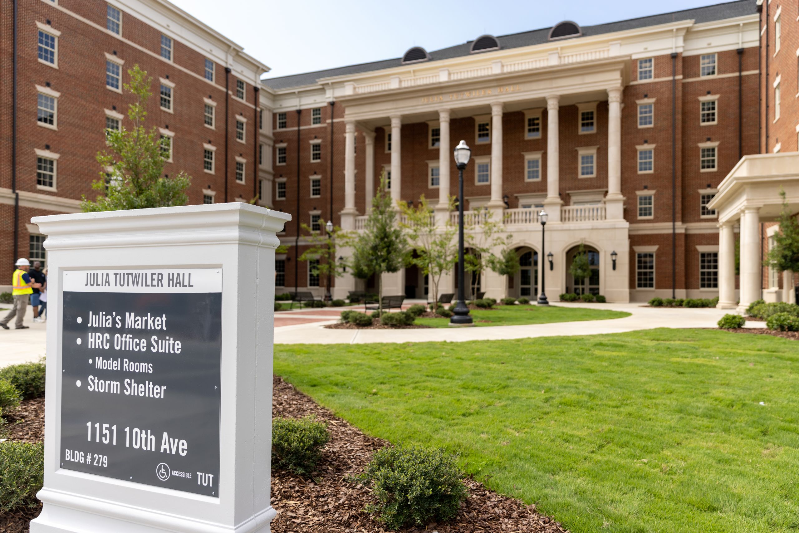 This new facility will be the third residence hall built on the University’s campus over a 100 year time span honoring Julia Tutwiler, a champion for education in Alabama. Located southwest of the current Tutwiler Hall, the New Tutwiler Residence Hall will accommodate over 1,200 freshmen female students with two-person rooms, with private bathrooms in each room, lounges, and community/traditional-style residence hall spaces. This new residence hall has been specially designed to meet student needs, as well as support annual move-in events and summer camps. Each level of the building includes smaller, intimate community-style living and study spaces to encourage a sense of comfort and togetherness. This new residence hall will also include on-site fitness amenities and a multipurpose room that doubles as a storm shelter that will provide a space for the residents to hold group meetings and social gatherings. We know it wouldn’t be Tutwiler without Julia’s Market — the beloved food service venue in the current Tutwiler Hall will move to the New Tutwiler Residence Hall. View Progress Photos! |