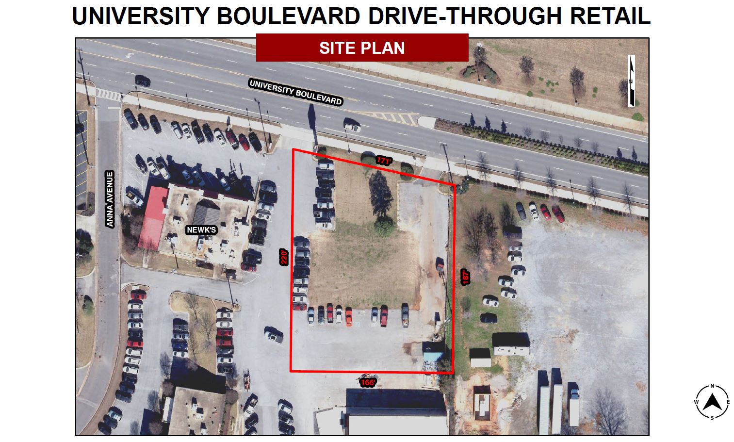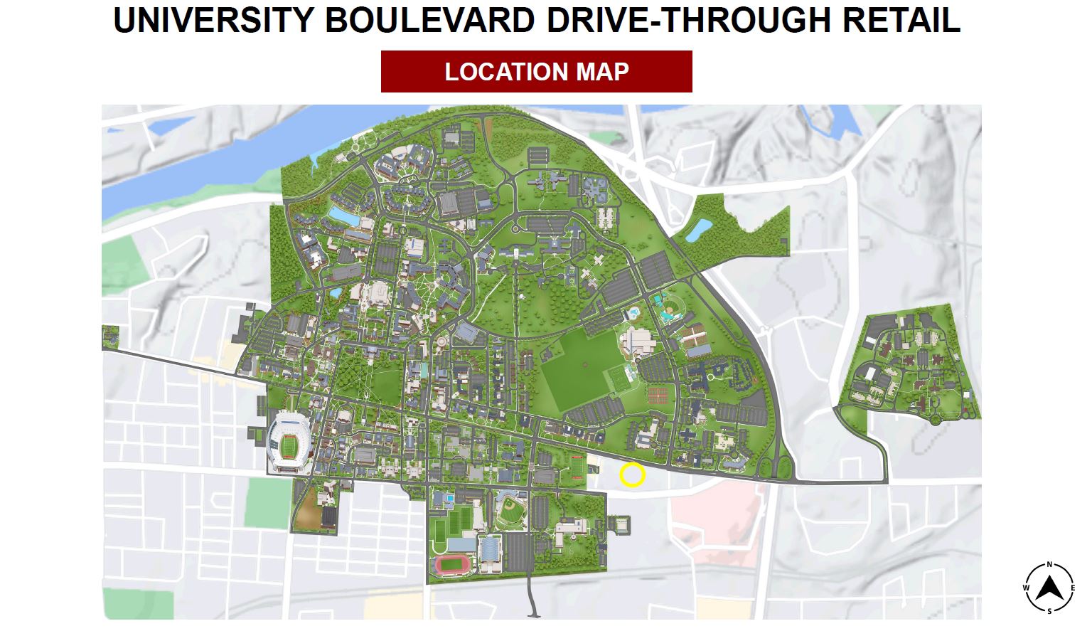The retail facility on University Boulevard will consist of the construction of a new Starbucks drive-through facility to serve the University community.