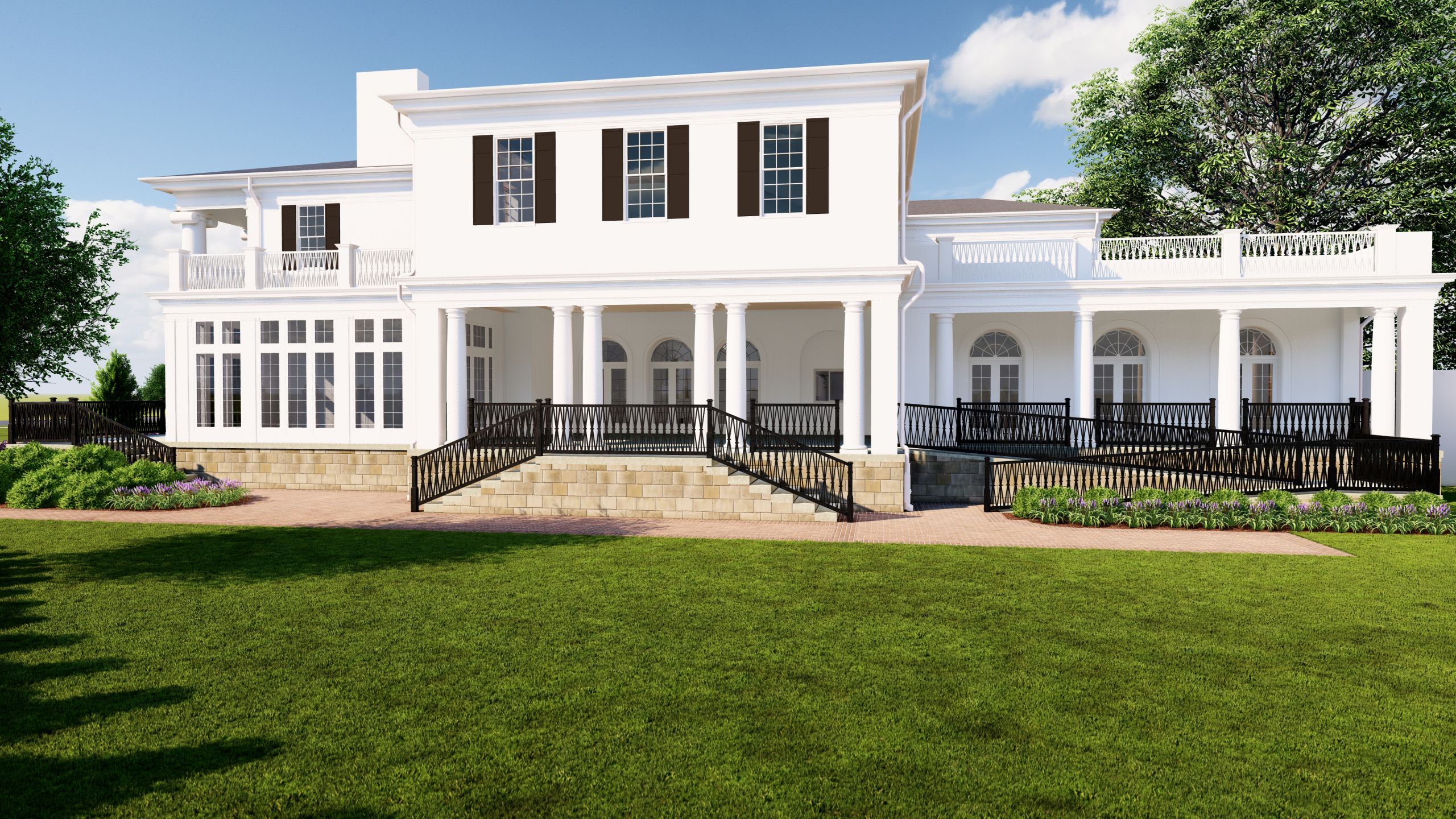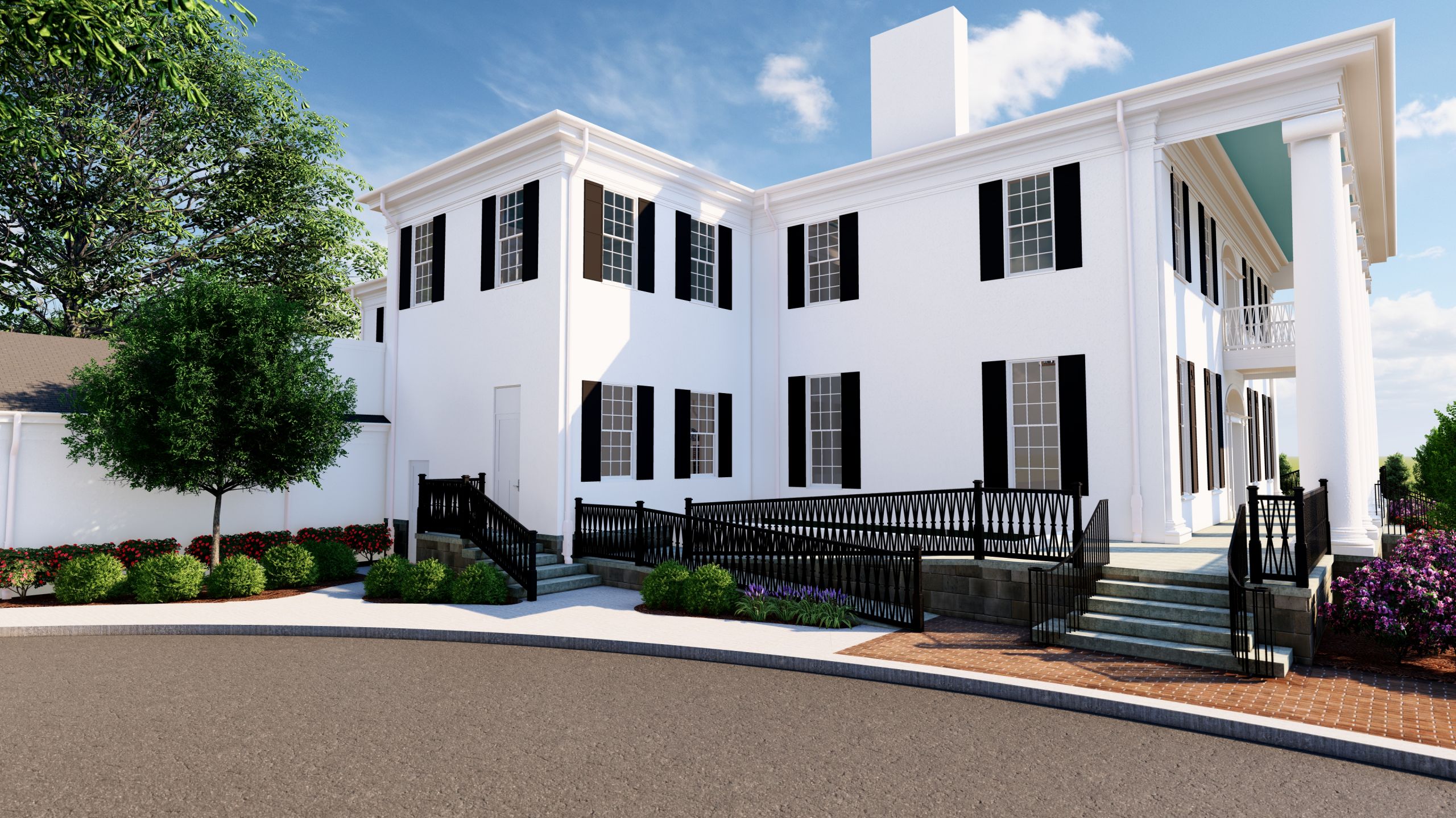 The University Club is a historic two-story Greek Revival structure with stucco veneer over solid masonry walls and a slate roof. Several additions have been added over the years. The scope of the proposed project involves a full restoration of the facility, excluding the kitchen, service yard and administrative wings. The existing reception, dining and special event spaces will be renovated and will continue to be used in similar capacities following the restoration. The existing south parlor will be repurposed as a lounge, casual dining area, and bar. The future south and east additions will include enhanced vertical circulation, additional dining space, a stairwell, expanded restrooms, and event space. The existing north parlor will be repurposed as a workspace with a similar concept to a hotel lobby. A boardroom will be added to the second floor. The south elevation of the building will feature a spacious balcony that overlooks the south garden and University Boulevard. This Project will also provide the opportunity to bring coherence between the numerous additions to the building while providing architecturally accurate execution of the massing, exterior detailing, elements, and materials as appropriate for this significant structure.